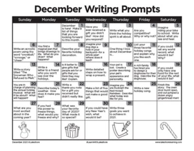 - Post this calendar and have your child check in every day for a new and exciting writing prompt.