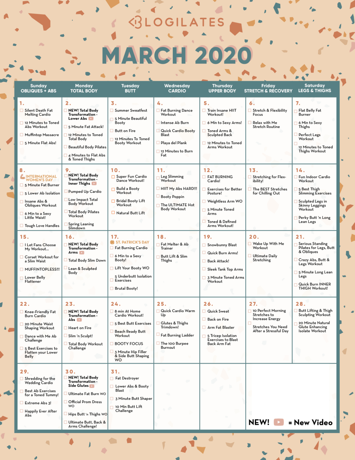 Blogilates March 2021 Calendar